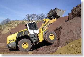 Radlader bei der Aufbereitung von Mineralgemisch.